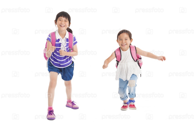 Счастливые бегущие школьницы