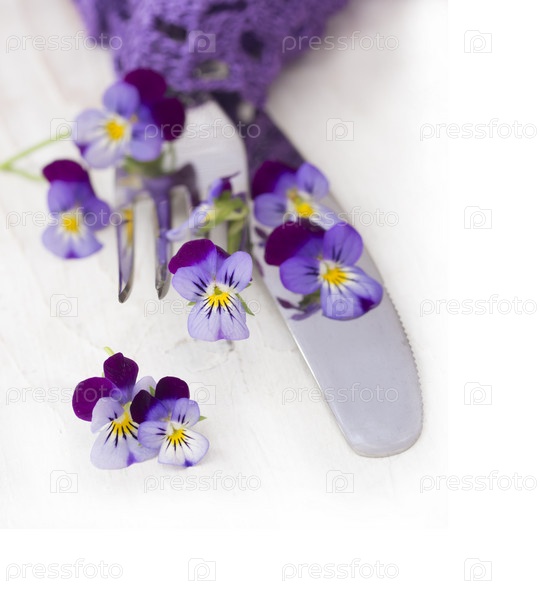 Серебрянные приборы с живыми цветами