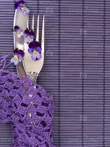 Серебрянные приборы с живыми цветами