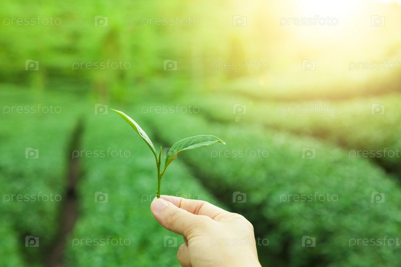 Рука, держащая чайный лист