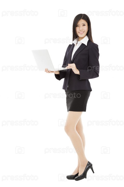 Счастливая бизнес-леди с ноутбуком