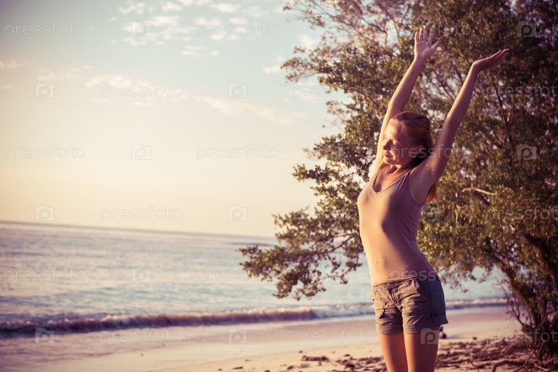 Женщина любуется закатом
