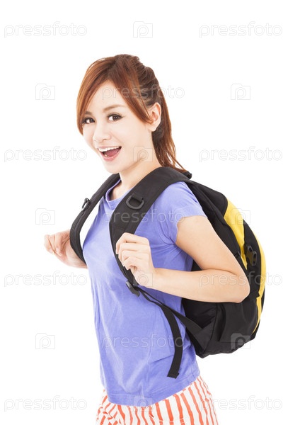 Счастливая азиатка с рюкзаком