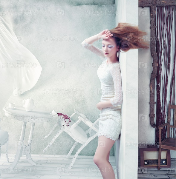 Модель в абстрактном интерьере