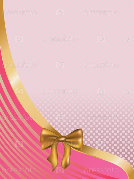 Розовая открытка с золотым бантом
