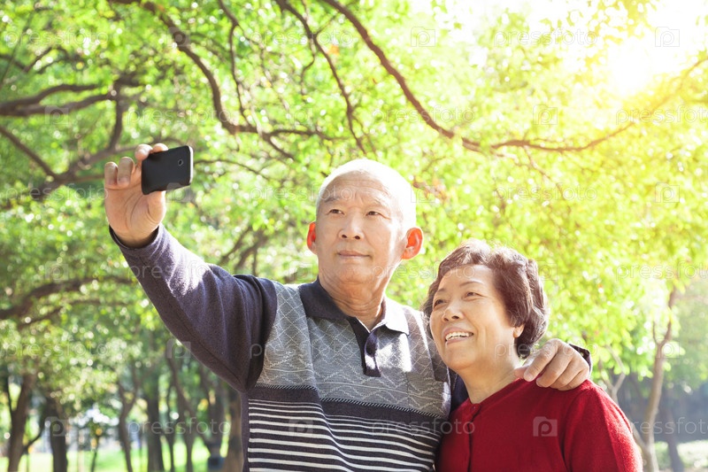 Пожилая пара делает автопортрет