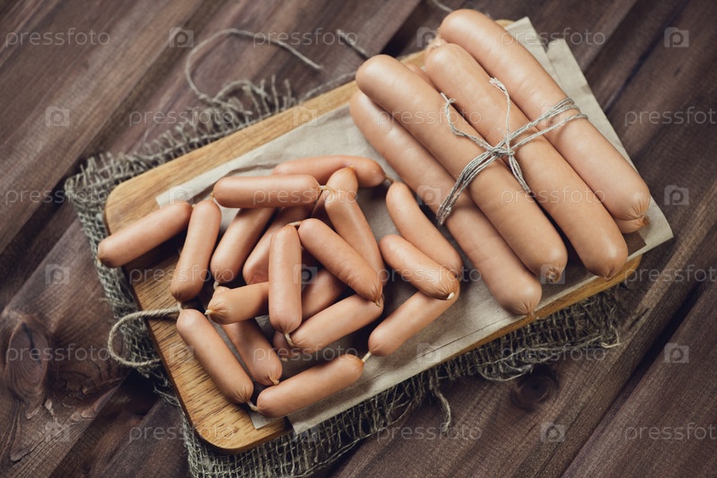 Сырые сосиски на разделочной доске