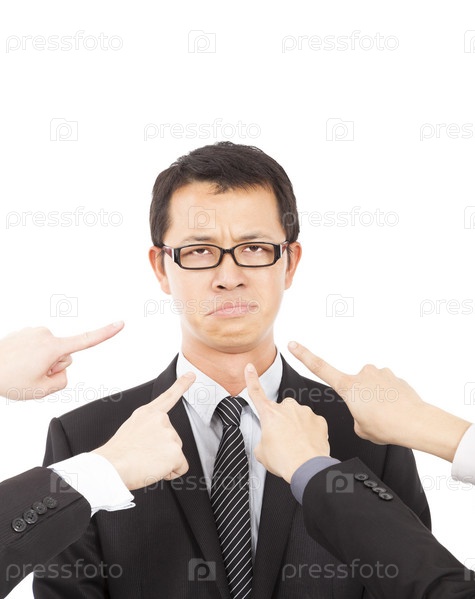 Руки указывают на печального бизнесмена