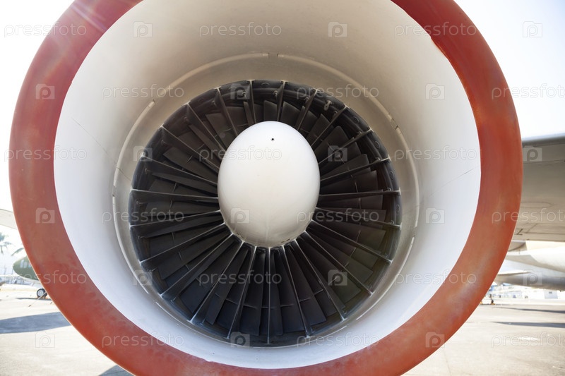 Двигатель реактивного самолета в аэропорту