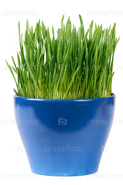 Зеленая трава в горшке