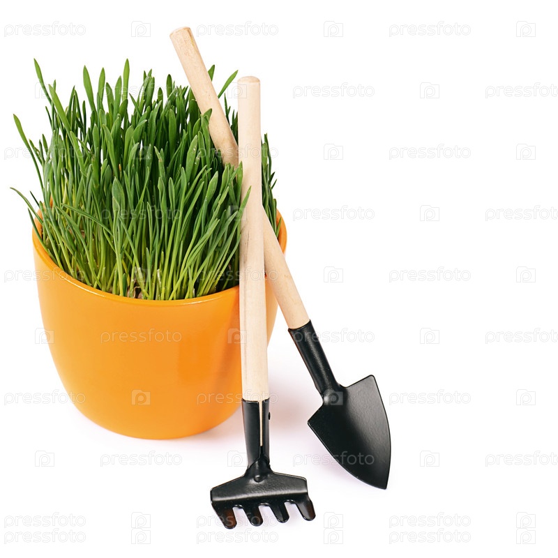 Зеленая трава в горшке, изолированная на белом фоне