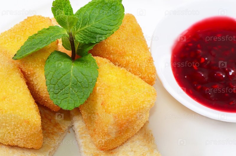 Сыр в сухарях с вареньем из смородины