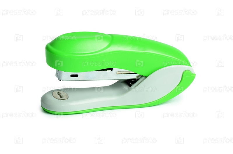 Зеленый степлер, изолированный на белом фоне