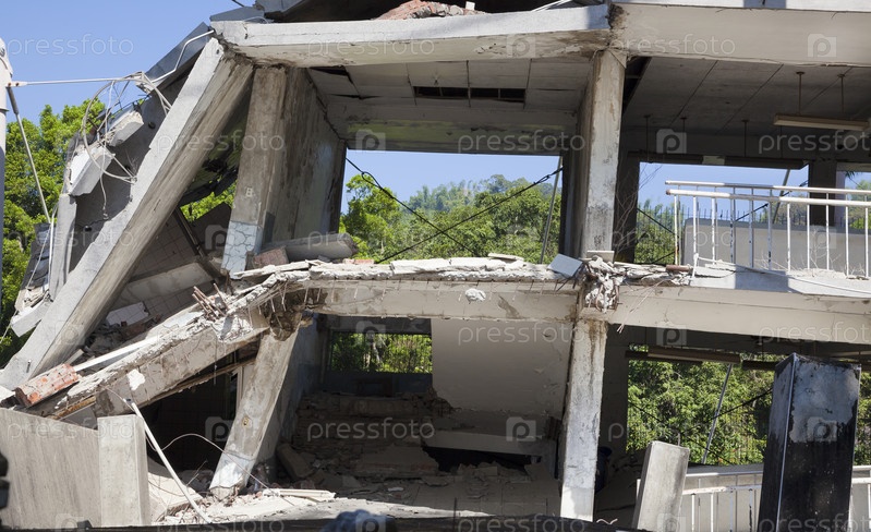 Разрушенное во время землетрясения здание
