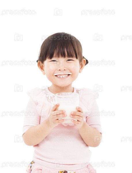 Азиатская девочка держит стакан свежего молока