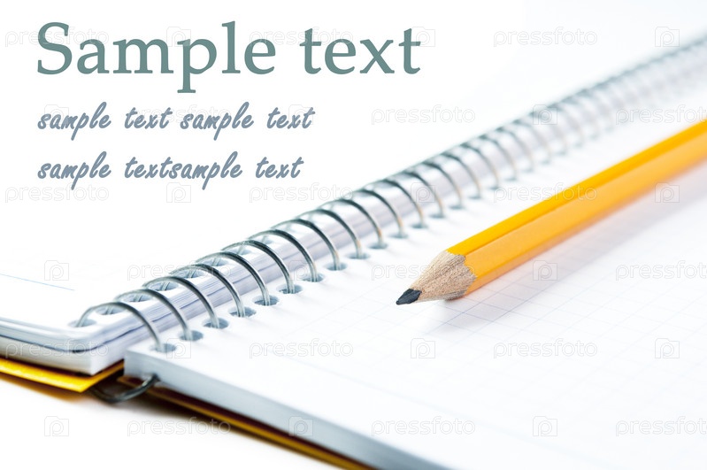 Желтый карандаш и тетрадь крупным планом на белом фоне