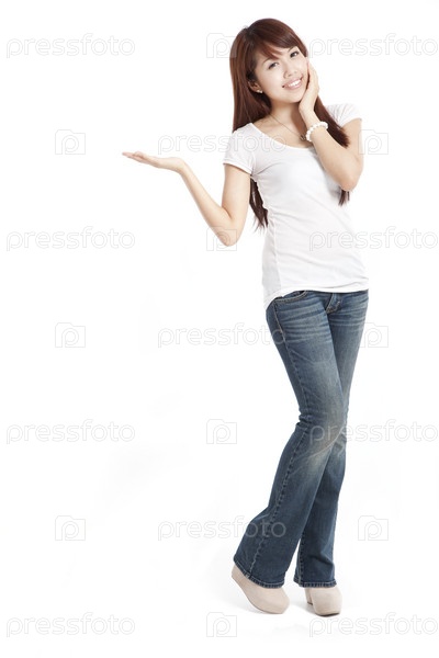 Счастливая женщина что-то представляет