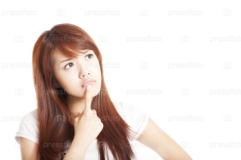 Задумчивая молодая женщина смотрит вверх