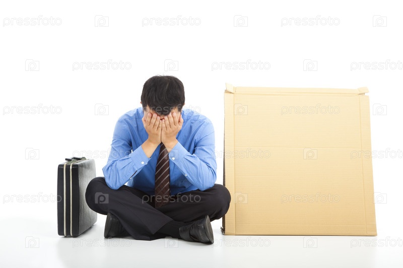 Разочарованный бизнесмен сидит на земле