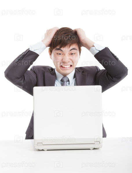 Разочарованный бизнесмен с ноутбуком