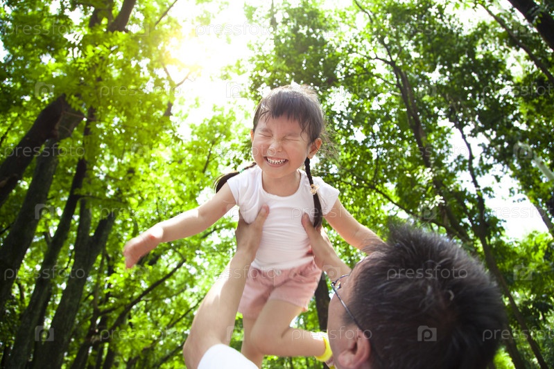 Маленькая девочка с отцом в лесу