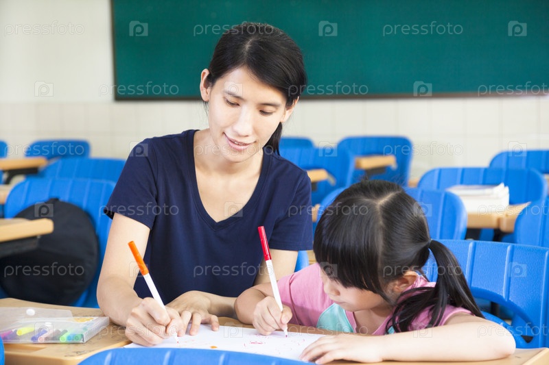 Женщина учит девочку рисовать