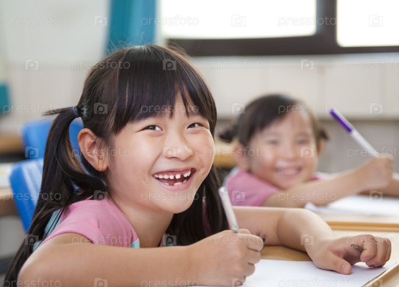 Счастливые девочки рисуют в классе