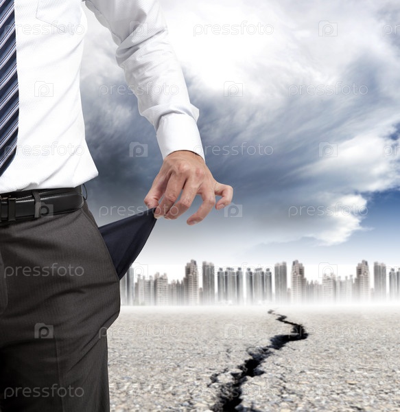 Деловой человек показывает пустой карман
