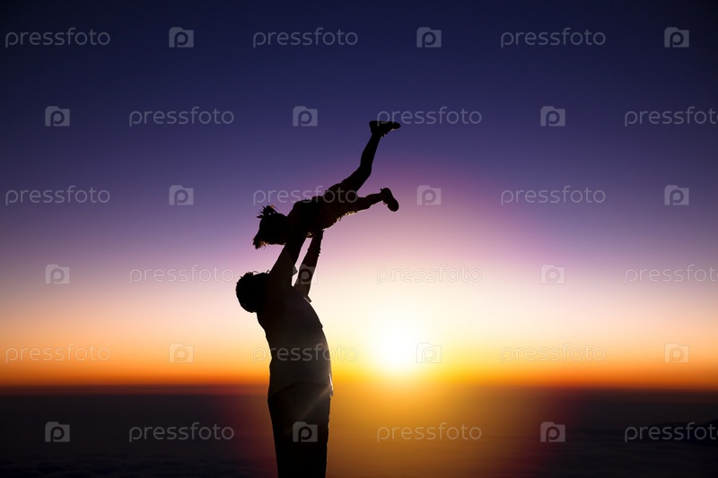 Силуэт отца с дочерью на восходе