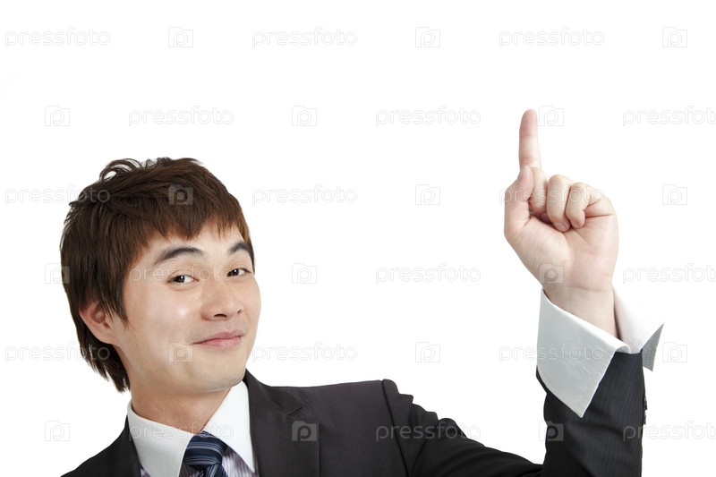 Азиатский бизнесмен указывает пальцем