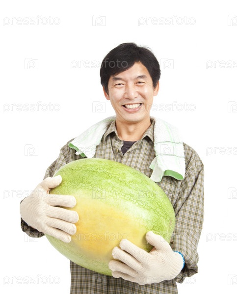 Счастливый фермер держит большой арбуз
