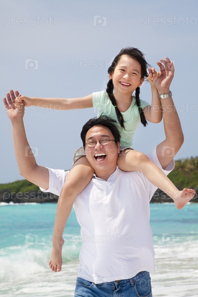 Отец с маленькой девочкой на пляже