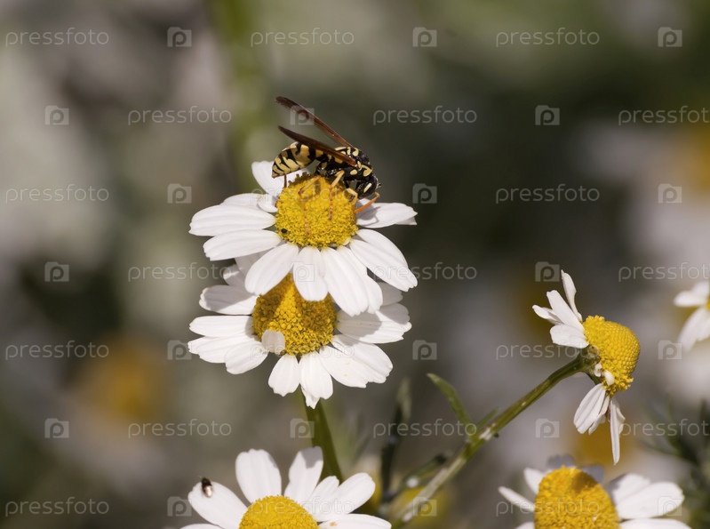 Аптечная ромашка, matricária chamomílla, с насекомым