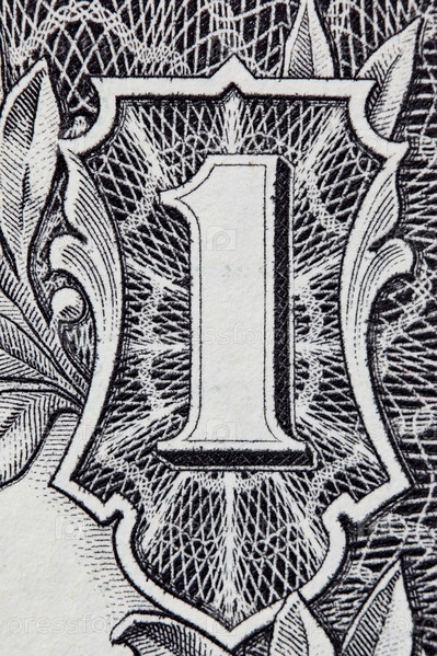 Цифра 1 на банкноте крупным планом