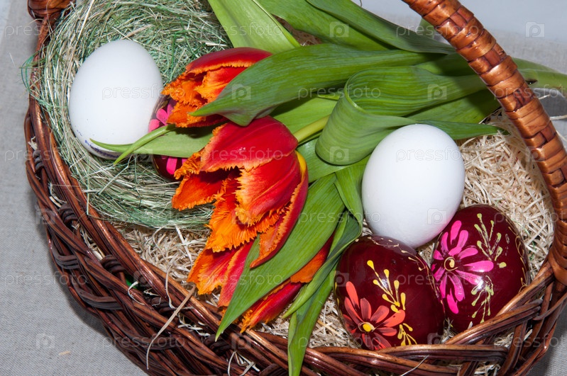 Тюльпаны и пасхальные яйца
