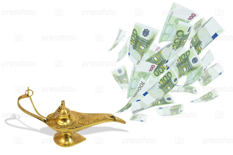 Деньги летят из волшебной лампы Аладдина