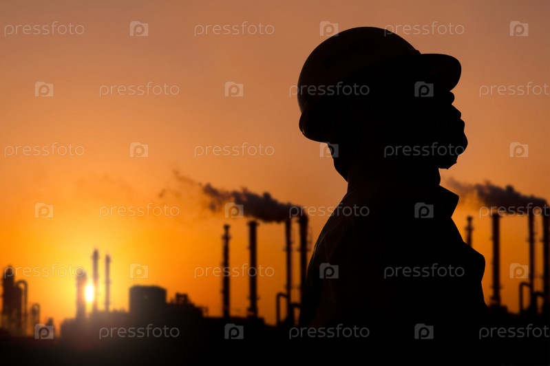 Силуэт работника нефтеперерабатывающего завода