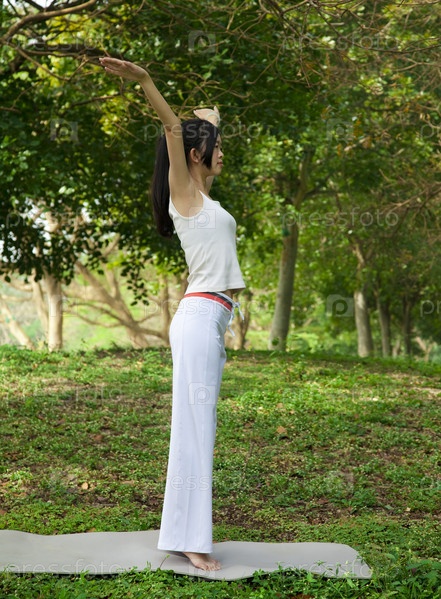 Девушка занимается йогой в парке