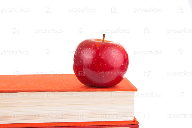 Стопка книг и красное яблоко