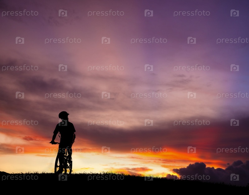 Силуэт велосипедиста на холме