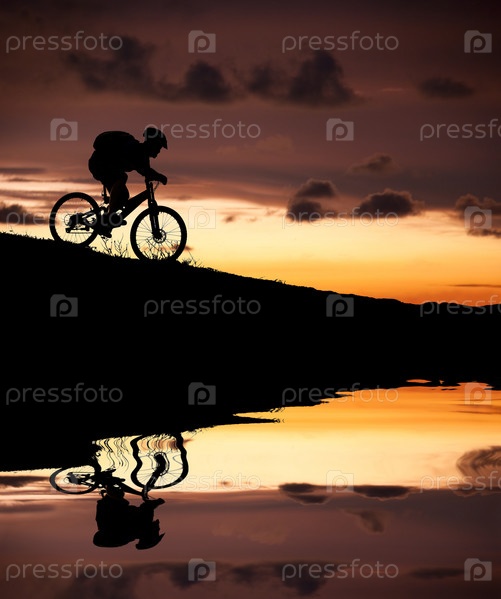 Силуэт велосипедиста на закате