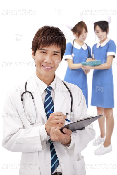 Молодой врач и медсестры