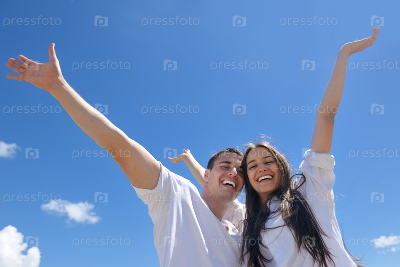 Счастливая пара отдыхает на пляже