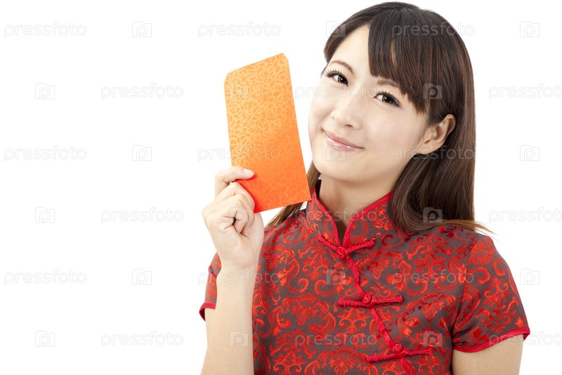 Красивая азиатская девушка держит красную сумку