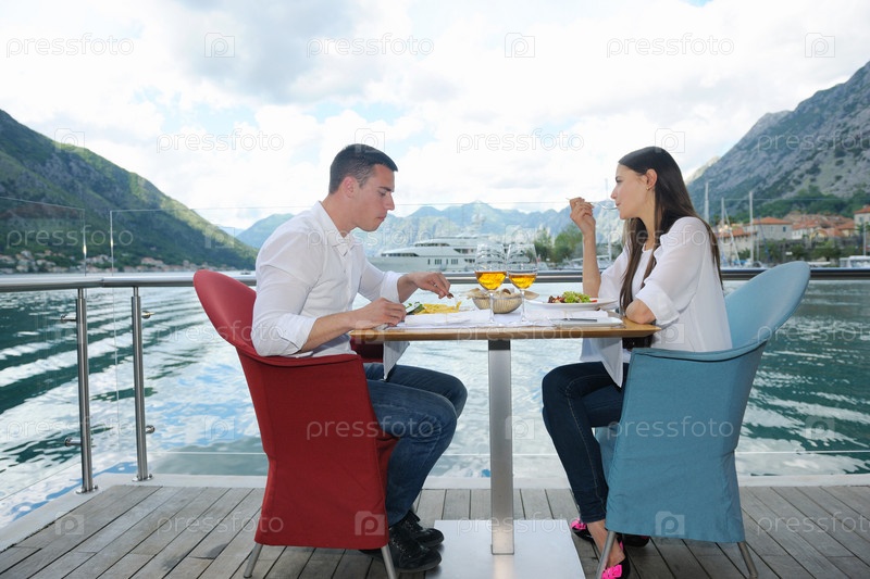 Пара обедает в ресторане