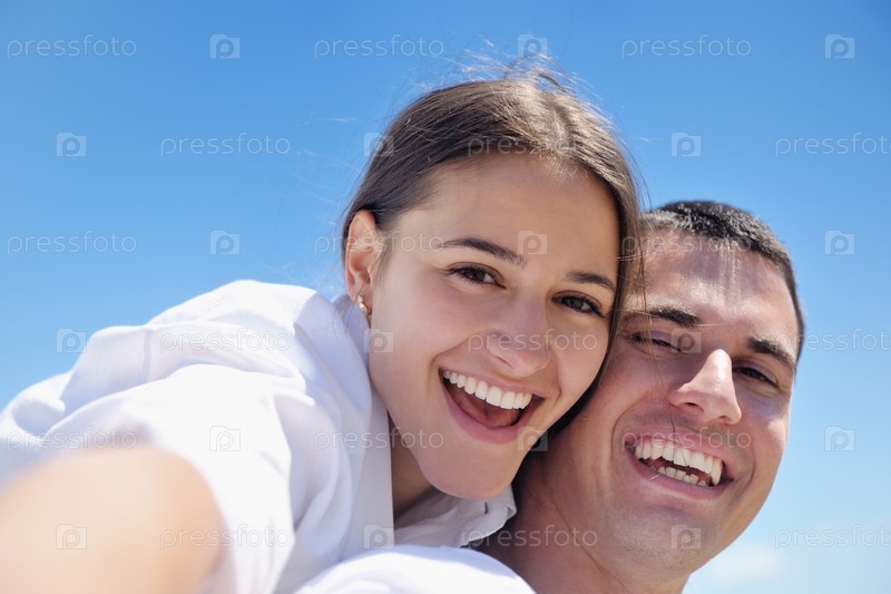 Счастливая пара на пляже