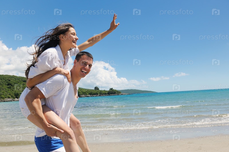 Счастливая пара на пляже