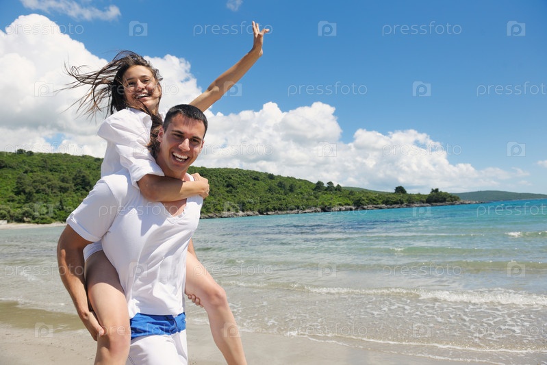 Счастливая пара на пляже
