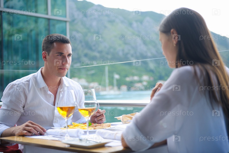 Пара обедает в ресторане