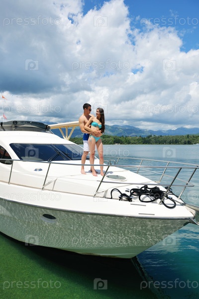 Молодая пара отдыхает на яхте